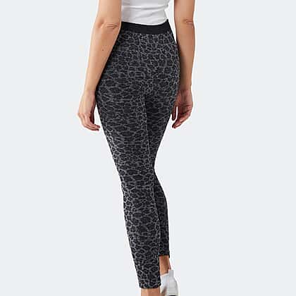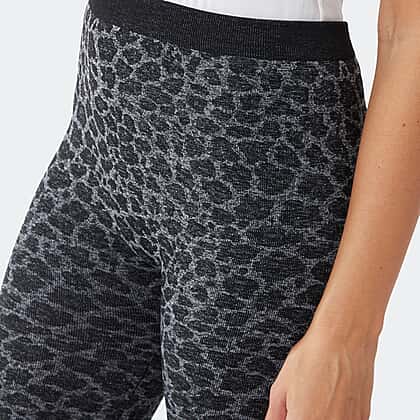Leopard Pattern Jacquard Fleece Lined Leggings (Size S) - Grey - Black