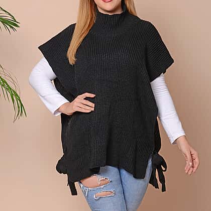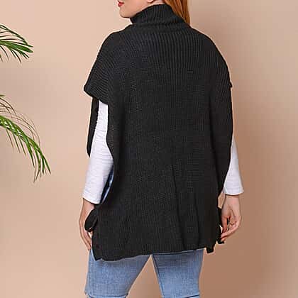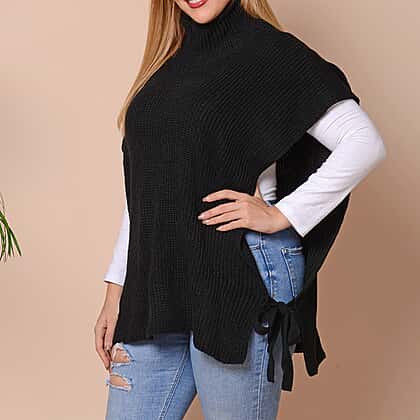 High Collar Knit Vest with Adjustable Strap on Sides in Black Colour