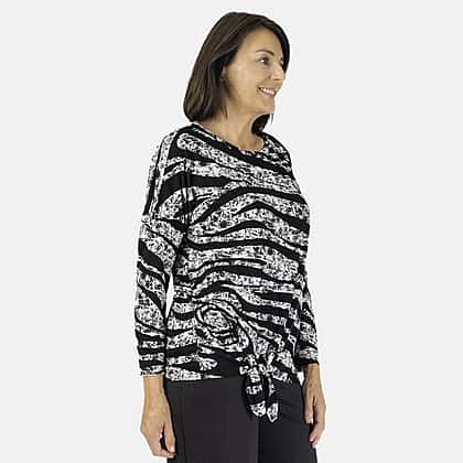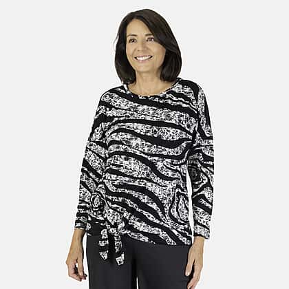With its perfect mix of comfort and style, this Indigo & Co Printed Top is a versatile choice for your wardrobe. Crafted from 96% viscose and 4% elastane, it offers a soft, lightweight feel that moves with you, keeping you comfortable all day. The classic round neckline and relaxed long sleeves add full coverage, while the knotted tie at the hemline gives a laid-back, stylish touch. Whether you’re dressing it up or down, this top effortlessly combines casual ease with modern style, making it ideal for everyday wear.