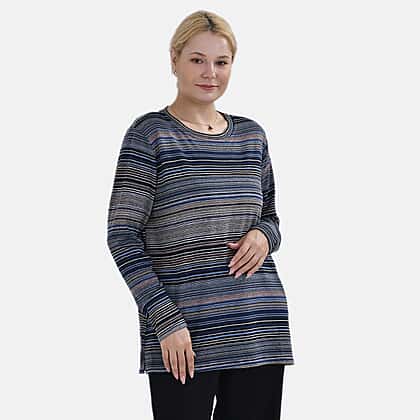 This La Marey Stripe Pattern Jersey Top is just what you need for a casual day out or running errands. The zebra stripe design gives it a trendy touch, while the relaxed fit and round neck create a flattering, easy-going look. Crafted from a soft blend of 95% polyester and 5% elastane, it holds its shape wash after wash, so it’s stylish and easy to care for. Whether you pair it with jeans or trousers, this top effortlessly fits into your everyday wardrobe. Ideal for both summer and autumn days.