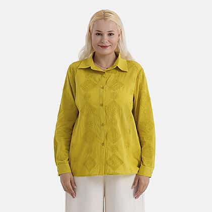 La Marey 100% Cotton Embroidered Shirt (Size 8 to 10) - Yellow