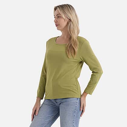 Refresh your wardrobe with a versatile essential designed for everyday ease, this classic rayon T-shirt delivers a soft, smooth texture that feels comfortable against the skin. The green shade offers effortless pairing options, making it a go-to piece for both casual and layered looks. With long sleeves and a relaxed fit, it provides comfort and flexibility while maintaining a clean, flattering shape. The lightweight fabric ensures breathability, making it suitable for all-day wear across seasons.