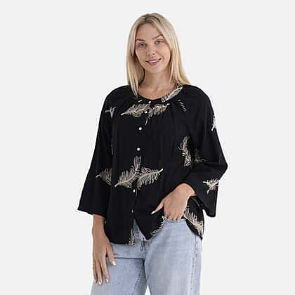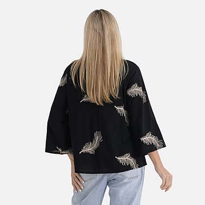 Bring comfort and detailed craftsmanship together with this La Marey cotton embroidery long-sleeve blouse, designed for breathable wear and effortless styling. The classic black base is enhanced with embroidered motifs that add texture and visual definition without overwhelming the design. Made from cotton, the fabric supports airflow and helps maintain comfort throughout the day. The relaxed fit allows ease of movement, while the wide sleeves provide added room and a soft drape. The length and cut make it easy to wear untucked or partially tucked, depending on your styling preference. Suitable for everyday wear, this blouse pairs well with denim, trousers, or skirts, offering a practical yet styled option for casual settings.