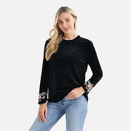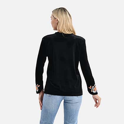 La Marey Embroidery Top (Size - XL) - Black & Burgundy
