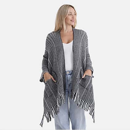 La Marey Relax Fit Tassel Cape (One Size, 8 to 20) - Black