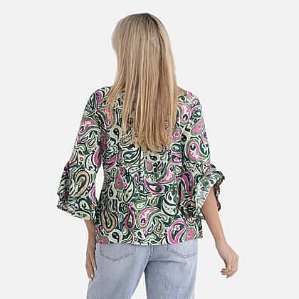 La Marey Round-Neck Flared Sleeve Printed Top (Size 20 to 22) - Multicolour