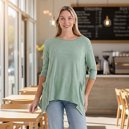 Brighten your everyday wardrobe with this La Marey soft touch asymmetric top, designed to combine comfort with a relaxed, modern silhouette. The green tone adds a cheerful and fresh feel, making it an easy choice for casual styling. Crafted from soft, lightweight fabric, it feels smooth against the skin while allowing ease of movement throughout the day. The asymmetric hemline creates a flattering drape, adding subtle shape and visual interest without compromising on comfort. The three-quarter sleeves complete the look with a practical and versatile touch. Ideal for pairing with jeans or casual trousers, this top offers a simple yet stylish option for everyday wear.
