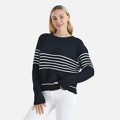La Marey Soft Touch Striped Jumper (Size M) - Navy & White