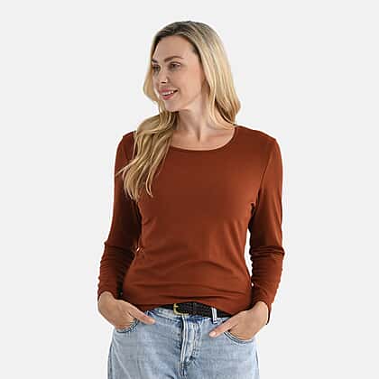 La Marey Viscose Classic Round Neck T-Shirt (Size XL) - Brown