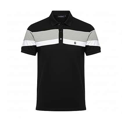 Mens Black Polo with Horizontal Color Block Stripes (Size XL)