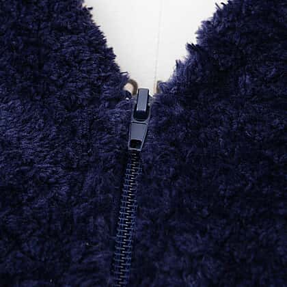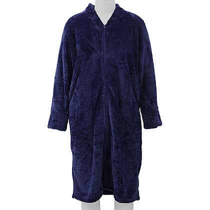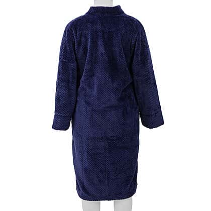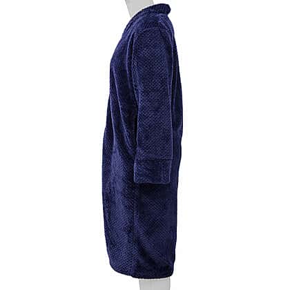 Microfibre Soft Jacquard Flannel Robe with Pocket and Zip-Front (Size 60x116 Cm) - Navy Blue