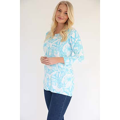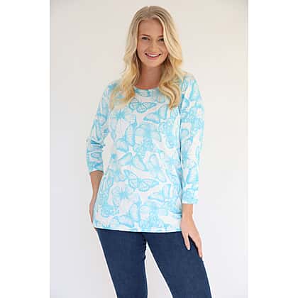 Mudflower Butterfly Print Tunic Jumper (Size 12 to 14) - Turquoise