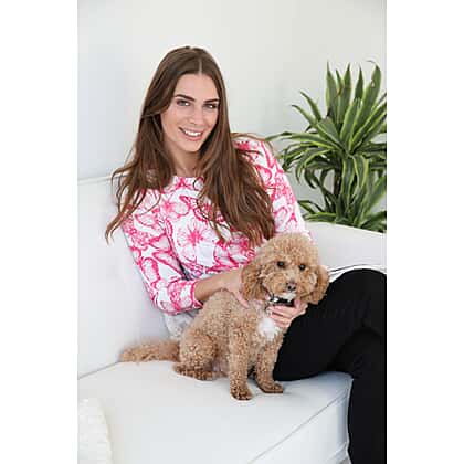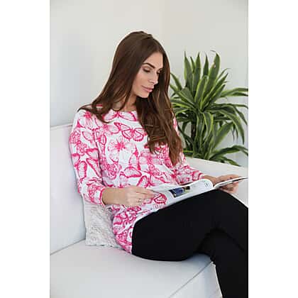 Mudflower Butterfly Print Tunic Jumper (Size 20 to 22) - Hot Pink
