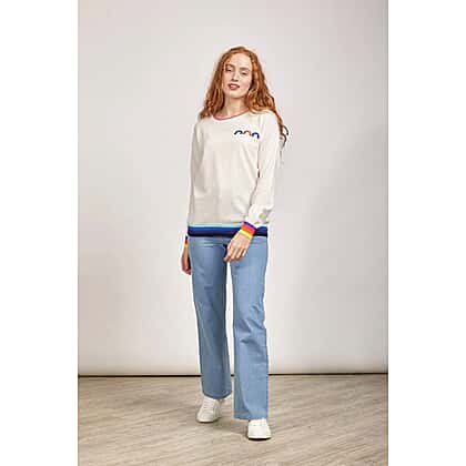 This mudflower jumper in white is the perfect blend of style and comfort. Crafted from soft, high-quality fabric, this jumper features vibrant striped cuffs that add a playful touch to the classic white design. Its relaxed fit ensures comfort while maintaining a fashionable look, making it perfect for both casual outings and lounging at home. Whether layered over a shirt or worn on its own, this jumper provides both warmth and versatility. With its timeless design, it’s a must-have addition to any wardrobe for those looking for a stylish yet comfortable option.