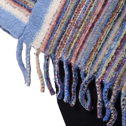 New Arrival Spring Style Striped Poncho with Blue Border and Tassel Hem