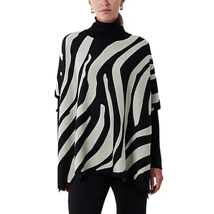 Nova of London Zebra Roll Neck Poncho Jumper (One Size, 8-20) - Black