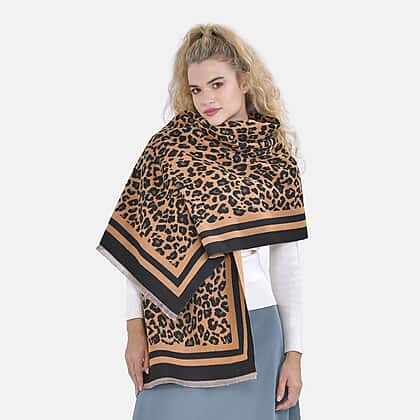 Closeout Deal - New Arrival Leopard Print Fluffy & Lightweight Scarf (Size 185x67cm) - Khaki