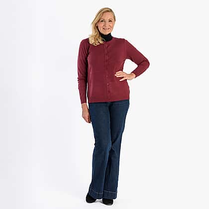 Pure And Natural Crew Neck Cardigan (Size 16) - Burgandy