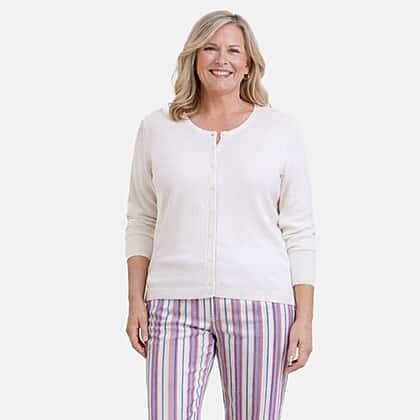 This white crew neck cardigan is a wardrobe essential, offering both comfort and style. Made from a soft blend of viscose, polyester, and nylon, it provides a breathable fit that's perfect for all-day wear. The classic crew neckline and button-down front make it easy to style, while the white colour adds versatility to any outfit. Whether you're layering over casual wear or pairing it with more formal pieces, this cardigan is ideal for creating effortless looks. Designed to be comfortable and practical, it's an essential addition to your everyday wardrobe.