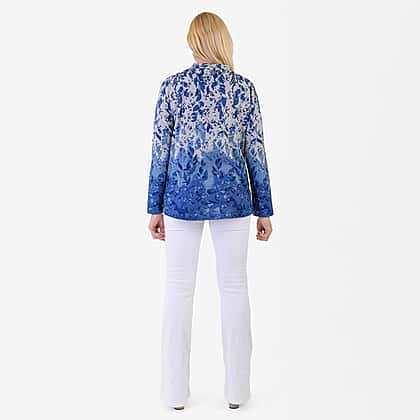 Pure And Natural Women's Turtle Neck Long Sleeve Jersey Top (Size L) - Blue & Grey