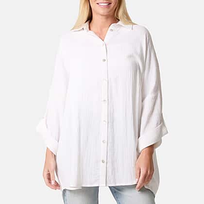 QED London Crinkle Oversized Shirt (One Size) - White