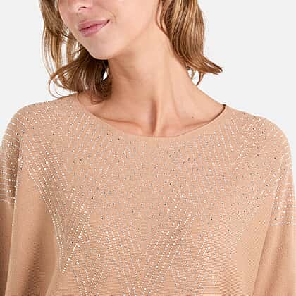 QED Zig Zag Embellished Jumper (One Size, M-L) - Camel