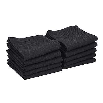 Set of 10 - 100% Cotton Kitchen Towel (Size 66x45 Cm) - Black