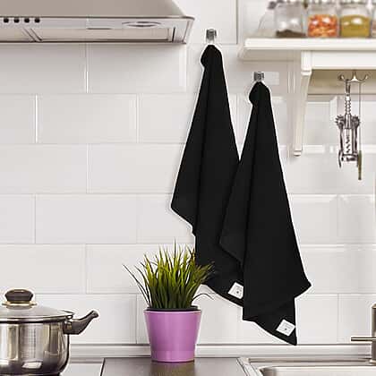 This set of 10 black kitchen towels is a perfect choice to keep your kitchen clean. These towels come with a super absorbent and quick dry property to minimize bacterial buildup. The towels are made with cotton to make them durable for everyday use. Each towel has a size of 66x45cm, ensuring ease of handling for any hand size. The towels can be dry, wiped & clean. The fabric makes them machine washable and durable for daily use. You can use them for all your household chores such as neatly soaking up spills on your counter, dab water off leafy greens, clean off cutting board and much more.