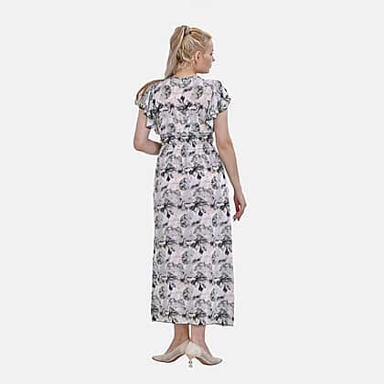 TAMSY Flutter Sleeve Smocked Rose Printed Midi Dress - Blue