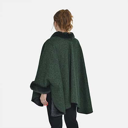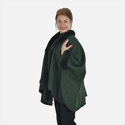 Close Out Deal- Double Knit Faux Fur Kimono - Dark Green