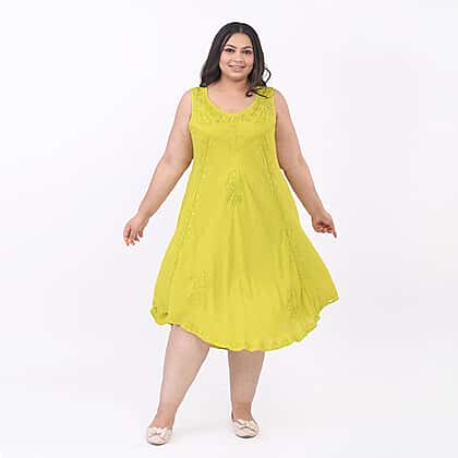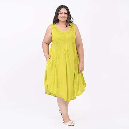 This perfect summer umbrella dress is a lightweight staple you need this season. It is made from soft viscose material, with a scoop neckline and sleeves-less dress. It features sequin floral embroidery all over the dress, giving it a chic and aesthetic look. Style this mid-length dress with strappy sandals, and you are all set for the summer holiday look.