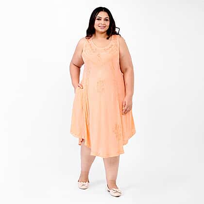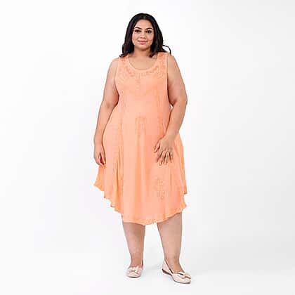 This perfect summer umbrella dress is a lightweight staple you need this season. It is made from soft viscose material, with a scoop neckline and sleeves-less dress. It features sequin floral embroidery all over the dress, giving it a chic and aesthetic look. Style this mid-length dress with strappy sandals, and you are all set for the summer holiday look.