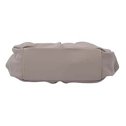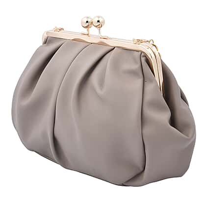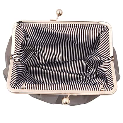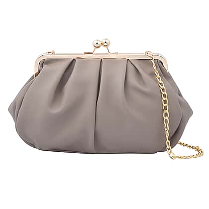 Clutch Bag with Metallic Lock and Long Chain Strap - Dark Beige