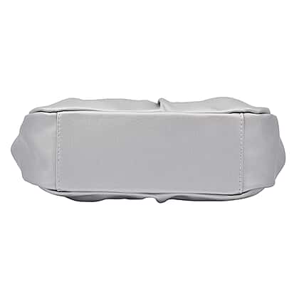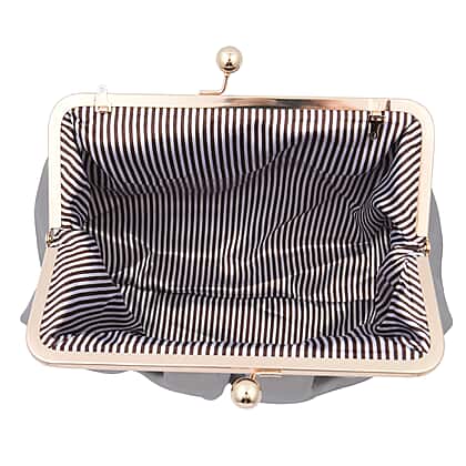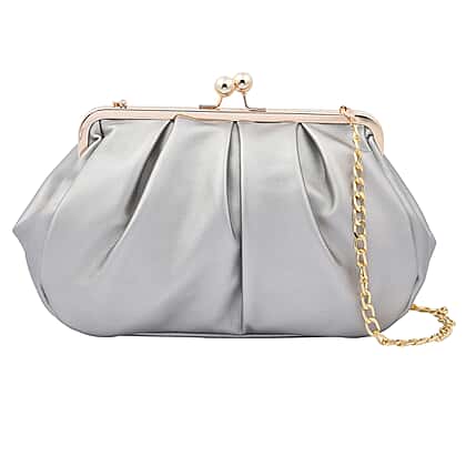 Clutch Bag with Metallic Lock and Long Chain Strap - Silver
