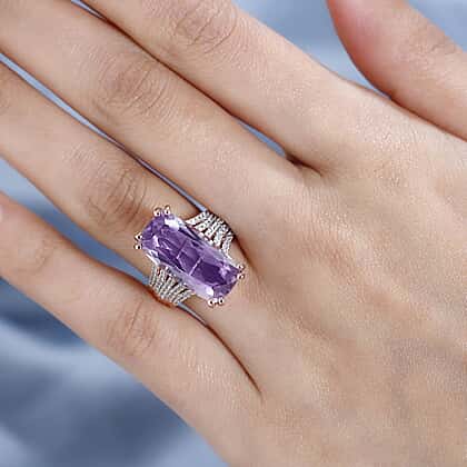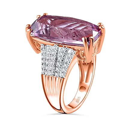 Cocktail Collection - Rare Size Rose De France Amethyst Ring in 18K Vermeil Rose Gold Plated Sterling Silver 11.437 Ct. (Stone Size 20x10 mm)