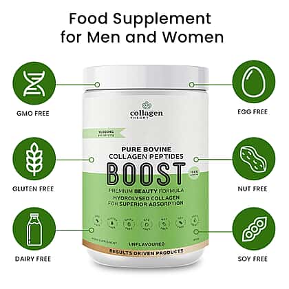 Collagen Theory: Boost Pure Bovine Collagen Peptide Food Supplement for Men and Women its Kito Friendly Glutten Free, Soy Free, Egg and Nut Free, Dairy Free, GMO- free
