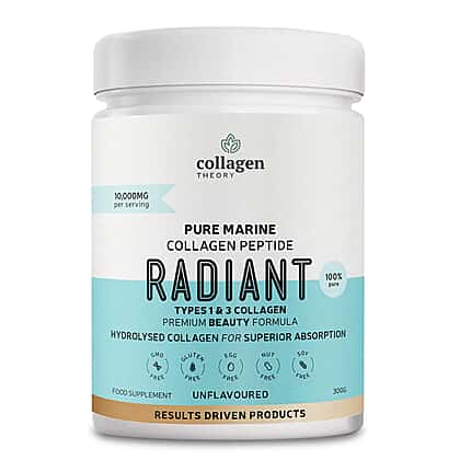 • THEORY RADIANT COLLAGEN: Radiant is a go-to product for a youthful appearance and other benefits because it is made from fresh, non-GMO marine sources