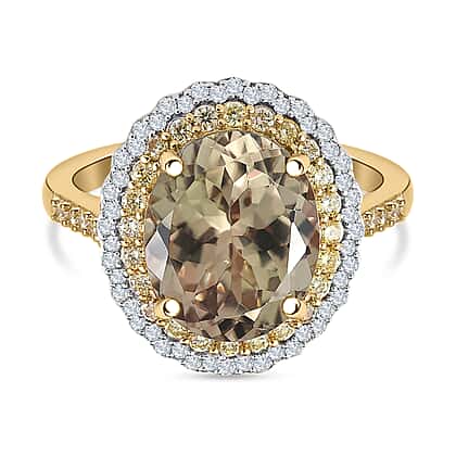 Collectors Edition - 18K Yellow Gold AAAA Turkizite (4.10 Ct), Natural Yellow Diamond (SI) and White Diamond (SI-GH) Ring 4.50 Ct