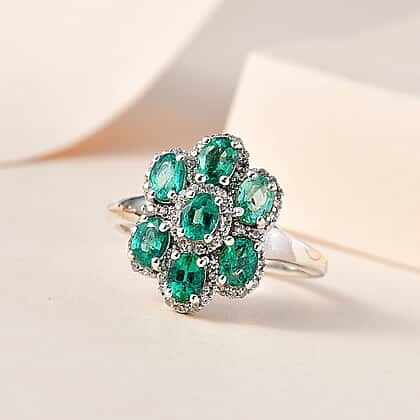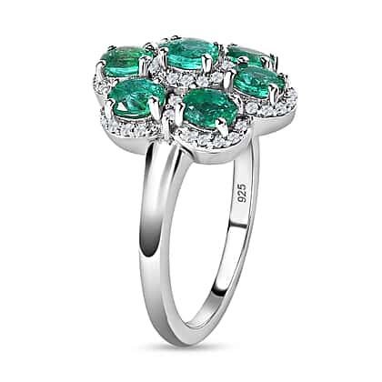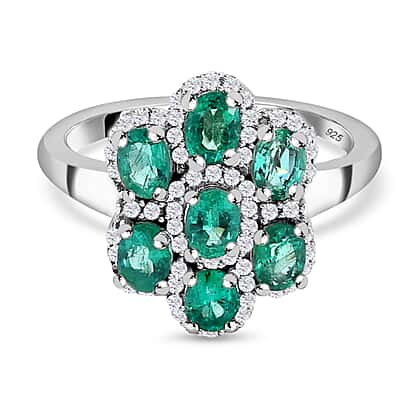 Collectors Edition- AAA Gemfields Emerald Natural White Zircon Cocktail Ring in Platinum Overlay Sterling Silver 1.45 Ct