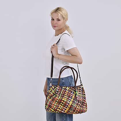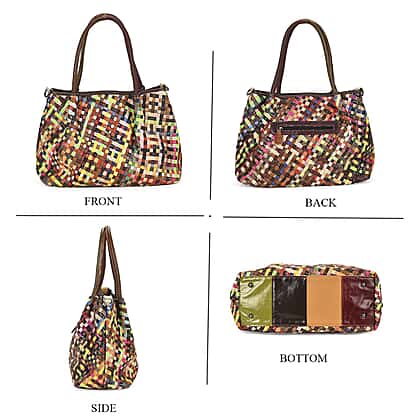 Colour Chaos Couture Genuine Leather Woven Tote Bag – Multicolour