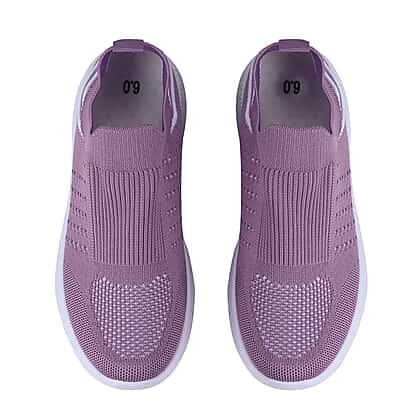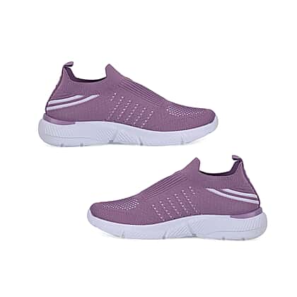 Stylish and Comfortable Non-Slip Breathable Knit Vented Trainers (Size UK 3) - Lilac - White