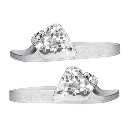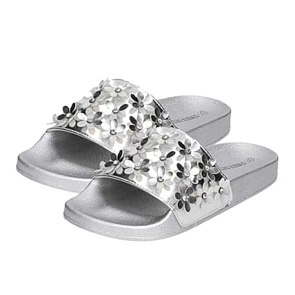 Comfortable Women Flower Slider in Silver