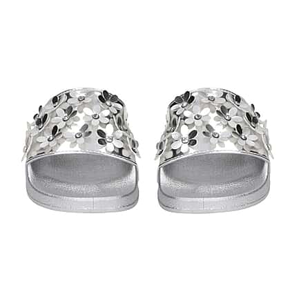 - DETAILING: The silver-toned floral detailing gives a distinctive appeal to these sliders
