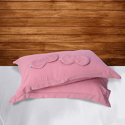 4 Piece Set Dusky Pink 2 Copper Infused Oxford Style Pillowcases and 2 Eye Masks