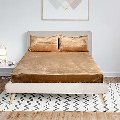 LIVMORE 3-Piece Teddy Flannel Bedding Set - inc. Fitted Sheet & 2 Pillowcases