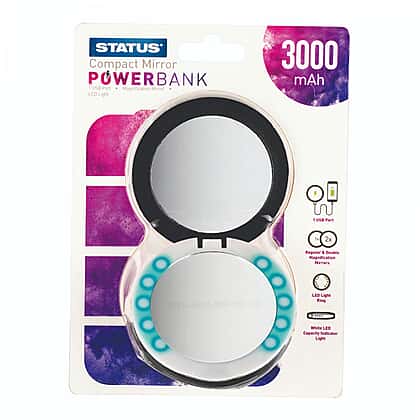 Stay flawless and fully charged wherever you go with the Status 2-in-1 Compact Mirror & Powerbank in black. This clever little essential combines a sleek dual magnification mirror with a powerful 3000mAh backup battery—perfect for makeup touch-ups and emergency phone boosts. The built-in LED light ring offers bright, even lighting, while the compact, travel-friendly design slips easily into any handbag. A white LED indicator keeps you updated on power levels, and the single USB output with Micro USB input ensures simple connectivity. Whether you're travelling, at work, or out for the evening, this stylish multitasker keeps your beauty and tech in check.