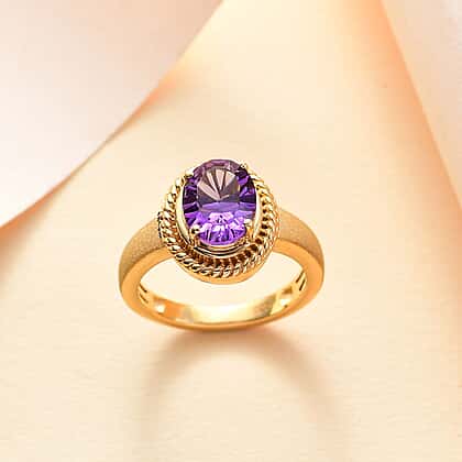 Concave Cut Zambian Amethyst Solitaire Ring in 18K YG Vermeil Sterling Silver. 1.887 Ct.