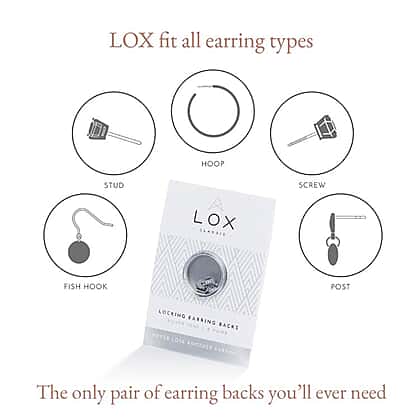 With these LOX earring backs, you can keep your earrings safe and secure. To begin, reattach this silver-toned earring back to your other earring as usual. Then, squeeze the metal clasp to remove the earring back. This set comes with two pairs of earring backs and is a must-have for every vanity. Adjusts automatically to fit sizes 0.5mm and 1.0mm and latches at any depth.
