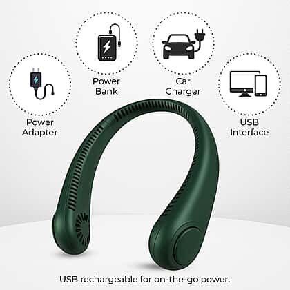 Cooling Neck Fan - USB Rechargeable Portable - Green