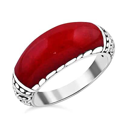 Revel in the beauty of this masterfully crafted Coral Ring in Sterling Silver. The ring has a cylindrical arc adorned with a bright red coral in the centre. The coral draws attention to your hand with its big size and unique cut that fits the curved design of the ring. The craftsmanship of the ring is at par with the ones of Jade stones and replicates their eye-catching presence.